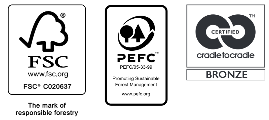 Ekologinen valinta: EU-ympäristömerkitty, FSC®- ja Blue Angel -sertifioitu.